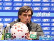 赛后,河南俱乐部彩陶坊主教练拉莫斯出席新闻发布会